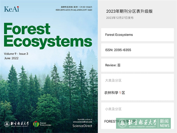 日前,《2023年中國科學(xué)院文獻(xiàn)情報中心期刊分區(qū)表》正式發(fā)布。我校主辦的兩本英文期刊表現(xiàn)亮眼,《森林生態(tài)系統(tǒng)(英文)》(Forest Ecosystems)蟬聯(lián)入選農(nóng)林科學(xué)大類1區(qū),林學(xué)小類1區(qū);《鳥類學(xué)研究(英文)》(Avian Research)入選生物學(xué)大類2區(qū),鳥類學(xué)小類2區(qū)。