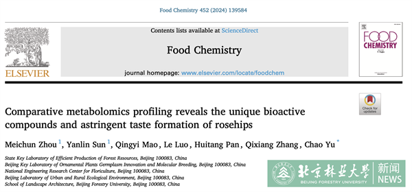 近日,園林學院于超教授團隊在《Journal of The Science of Food and Agriculture》(中國科學院二區,IF=4.1)及《Food Chemistry》(中國科學院一區Top,IF=8.8)連續發表2篇研究論文,深入揭示了薔薇屬植物果實次生代謝物的組成及品質差異,并對其呈色機制和澀味候選物質進行初步探索,結果為薔薇屬植物花果兼用及果實的品質改良和進一步開發利用提供了重要的理論支撐。