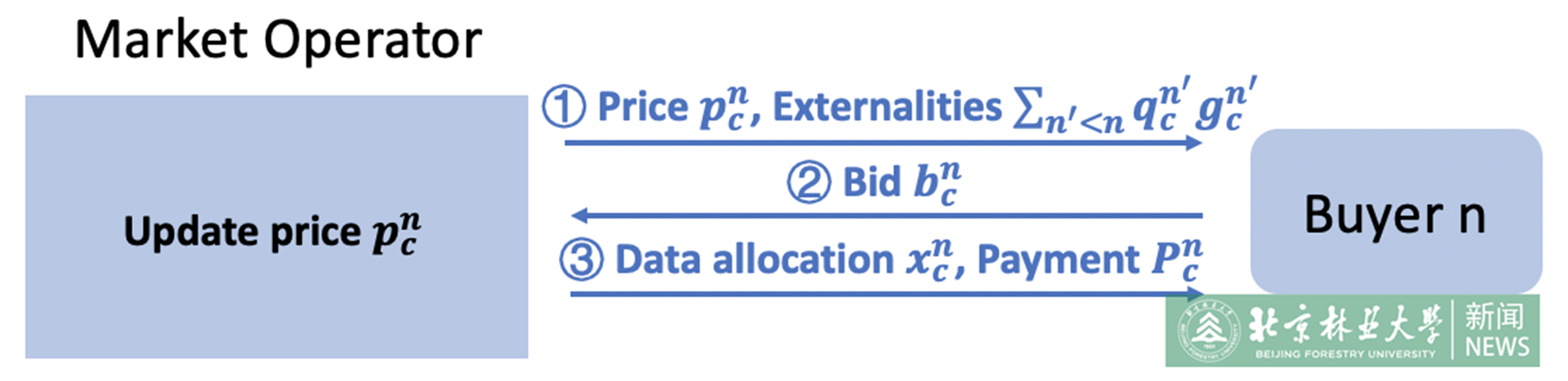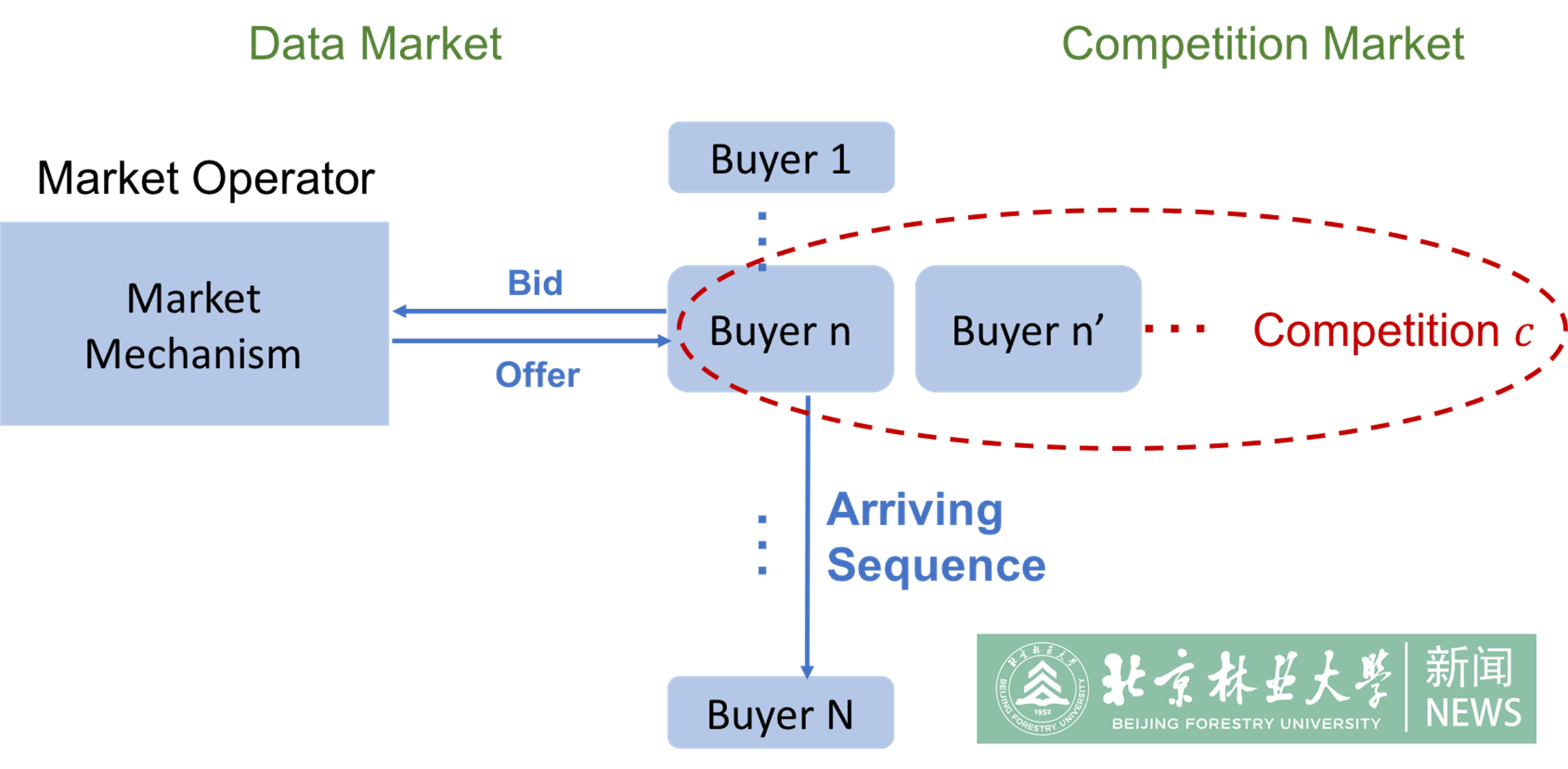 本文主要關(guān)注數(shù)據(jù)市場設(shè)計中兩個重要的實際問題:1)購買數(shù)據(jù)的企業(yè)以任意順序動態(tài)到達數(shù)據(jù)交易市場;2)購買同類數(shù)據(jù)的企業(yè)(即經(jīng)營同類業(yè)務(wù)的商業(yè)競爭對手)之間存在外部性。這兩個方面在現(xiàn)有研究中受到的關(guān)注度還極為有限。具體來說,本文為實時動態(tài)到達的數(shù)據(jù)買家設(shè)計了一個數(shù)據(jù)交易市場,早到的數(shù)據(jù)買家將對同一競爭中晚到的數(shù)據(jù)買家施加負外部性,或者說相同的數(shù)據(jù)集組合對于早到的數(shù)據(jù)買家來說在相應(yīng)商業(yè)競爭中有更高的市場價值。構(gòu)建的市場動態(tài)過程如下:數(shù)據(jù)買家到達時,根據(jù)市場運營商發(fā)布的價格和當(dāng)前外部性提交出價;市場運營商收到出價后,宣布數(shù)據(jù)分配和支付款額的決策,并更新當(dāng)前的價格。本文提出了詳細的數(shù)據(jù)分配規(guī)則、支付款額規(guī)則和價格更新算法,并從理論上證明了這些市場機制可以保證激勵相容性、個體合理性、收入最大化和計算效率這四個所需屬性,保證市場能在大規(guī)模、實時環(huán)境中穩(wěn)健運行。這些理論結(jié)論也通過數(shù)值實驗得到了驗證。