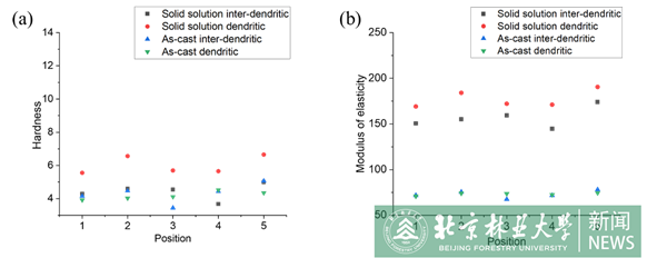 鎳基單晶高溫合金以其卓越的高溫強度、結構穩定性、使用可靠性以及高溫蠕變性能,在航空航天、船舶及特種制造業等領域得到了廣泛應用。但由于不同元素的溶解度不同,導致在定向凝固過程中極易發生元素偏聚現象,從而對合金的微觀力學性能甚至是宏觀力學性能造成不利影響。本文將納米壓痕與元素分布相結合,分析了γ/γ'兩相及枝晶組織元素分布,如圖1和圖2所示,結果表明,Al和Co元素偏析系數變化最大,枝晶間中Al元素偏析系數下降了36%,Co元素偏析系數上升了19%;枝晶干Al元素偏析系數下降了29%,Co元素偏析系數上升了34%。同時對固溶處理前后枝晶間和枝晶干組織分別進行了納米壓痕實驗,結果如圖3所示。結果表明,枝晶間彈性模量由72.990 Gpa提升至156.727 Gpa,提升了114.7%,枝晶干彈性模量由73.091 Gpa提升至177.408 Gpa,提升了142.7%。枝晶間硬度無明顯變化,而枝晶干硬度由4.188 Gpa提升至6.025 Gpa,提升了43.86%。