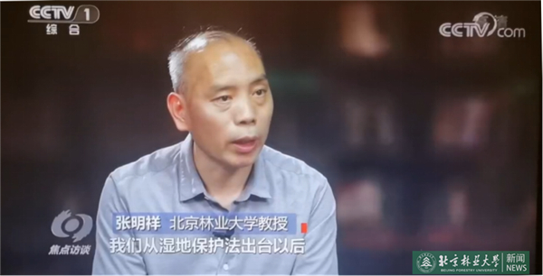 11月14日,中央電視臺《焦點訪談》推出“以法為盾 守護濕地”專題欄目,北京林業大學教授、國家林草局自然保護區研究中心秘書長張明祥在欄目中接受專訪,解讀了濕地保護立法的重要性和必要性。