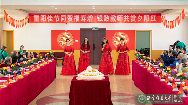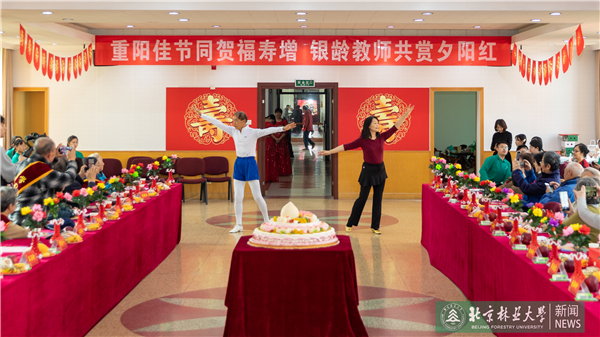 會議共分為致敬、祝壽、表彰、歡慶四個環(huán)節(jié)。離退休老同志樂器組、合唱組、舞蹈組、學(xué)生合唱團成員分別為老壽星獻上歌曲《山楂樹》、舞蹈《奉獻一份愛》歌曲《長大后我就成了你》,表達對老壽星的無限敬意。老壽星退休前所在單位代表用不同形式為老壽星送上節(jié)日祝福。