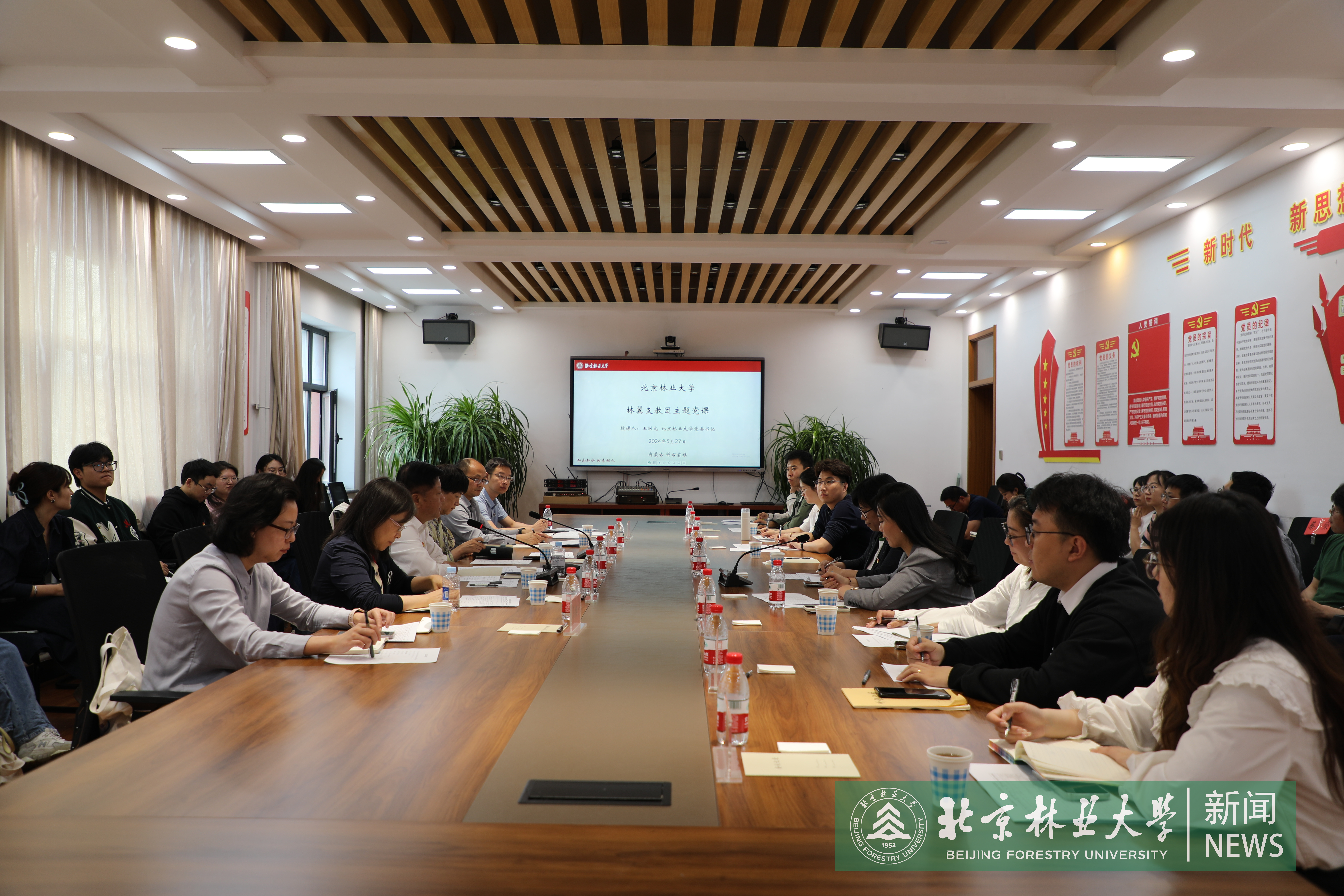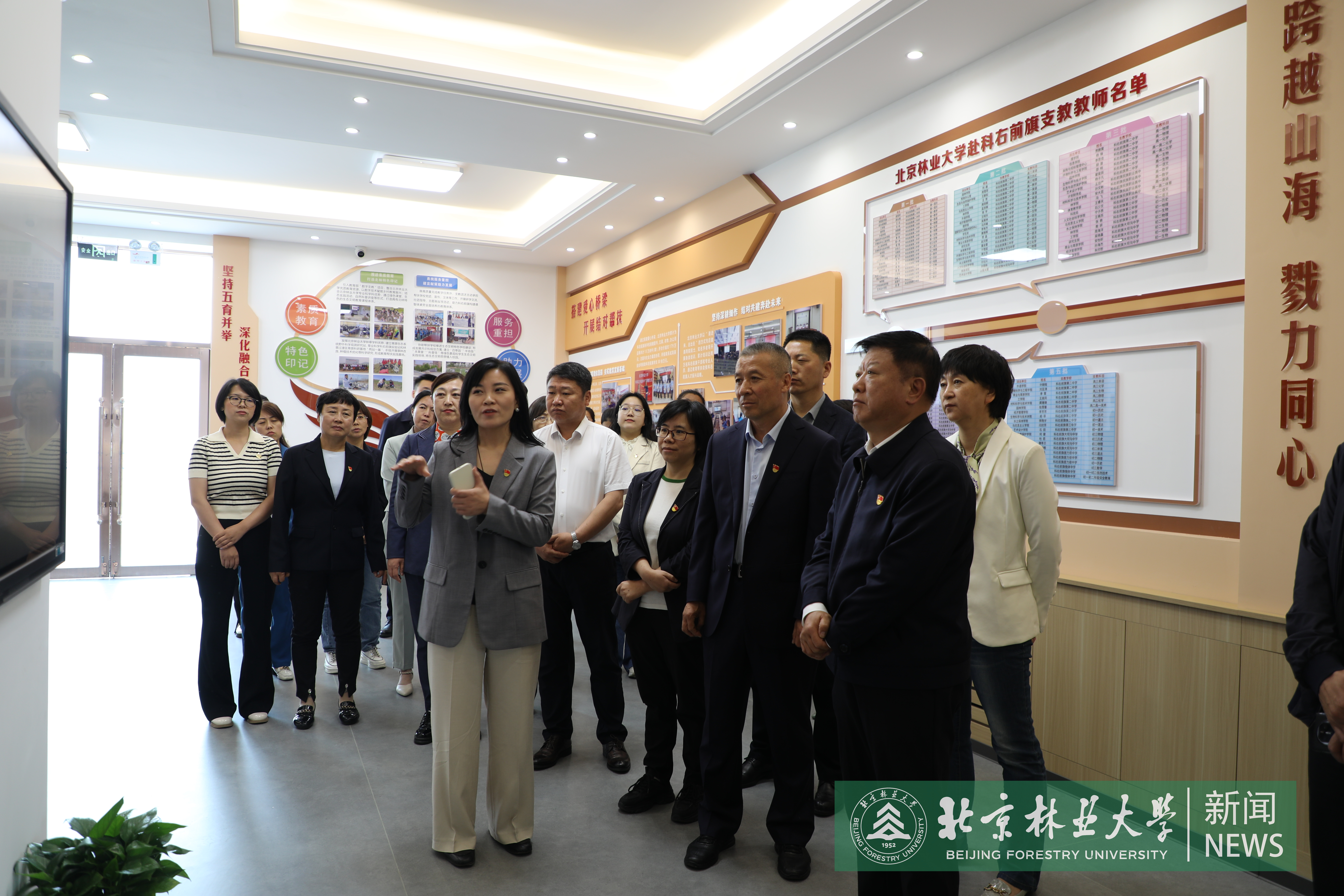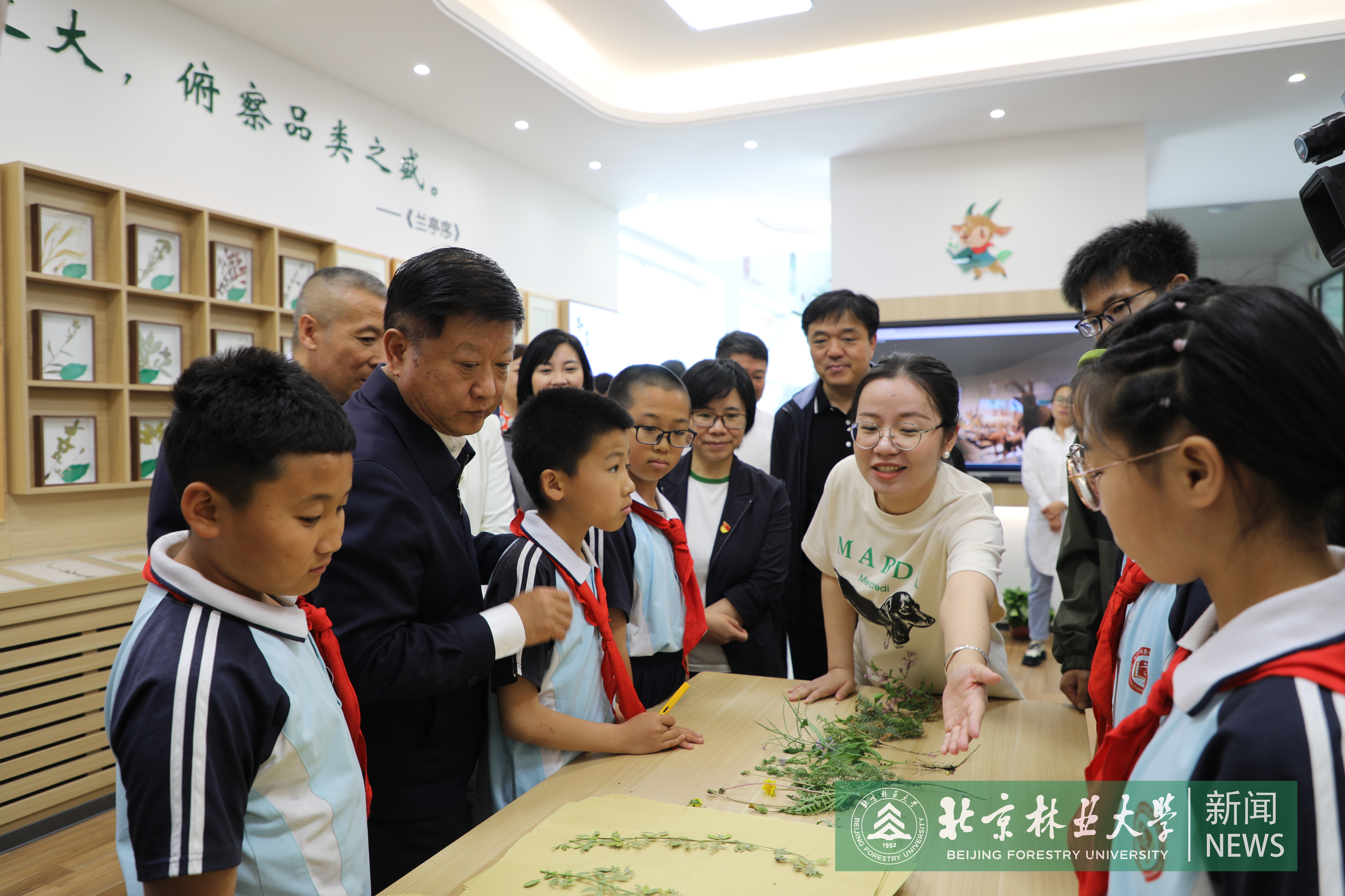 王洪元一行與科右前旗政府舉行工作座談會,共同推動2024年幫扶工作落地,并赴興安北京小學和“千萬工程”示范村柳樹川村進行實地調研。在興安北京小學,王洪元和劉海濤為“北京林業大學生態文明教育基地”揭牌,參觀由我校第五批教師支教團支持建設的北京林業大學教育幫扶科右前旗十年成果展、生態研學基地“興安本草堂”,參與學生植物標本制作課。王洪元表示,要充分發揮我校在宣傳闡釋習近平生態文明思想方面的多重優勢,依托興安北京小學毗鄰城中草原的區位特點,高質量建設融通校內外的自然研學實踐基地,為當地中小學生更好接受生態文明實踐教育提供優質平臺。
