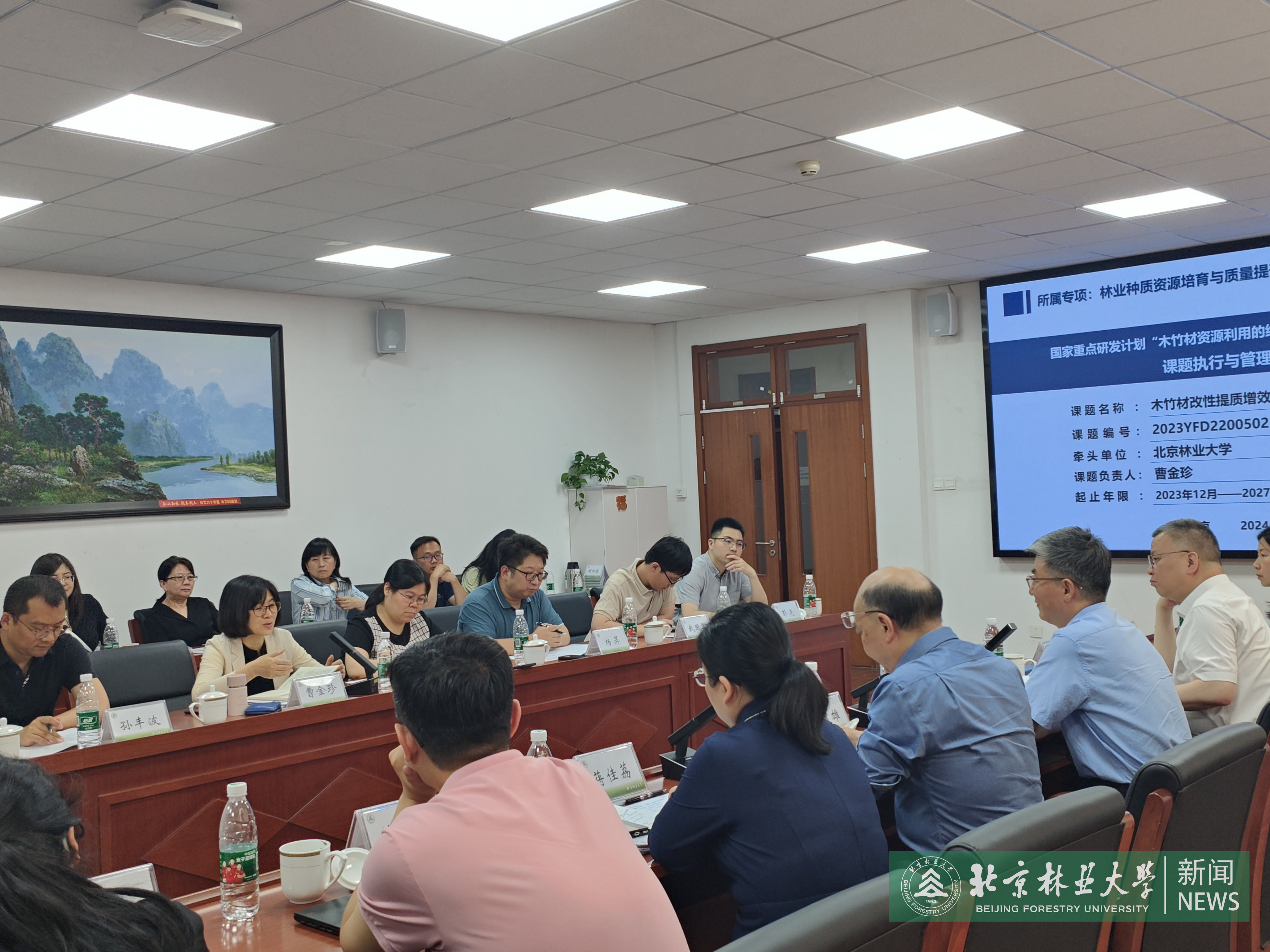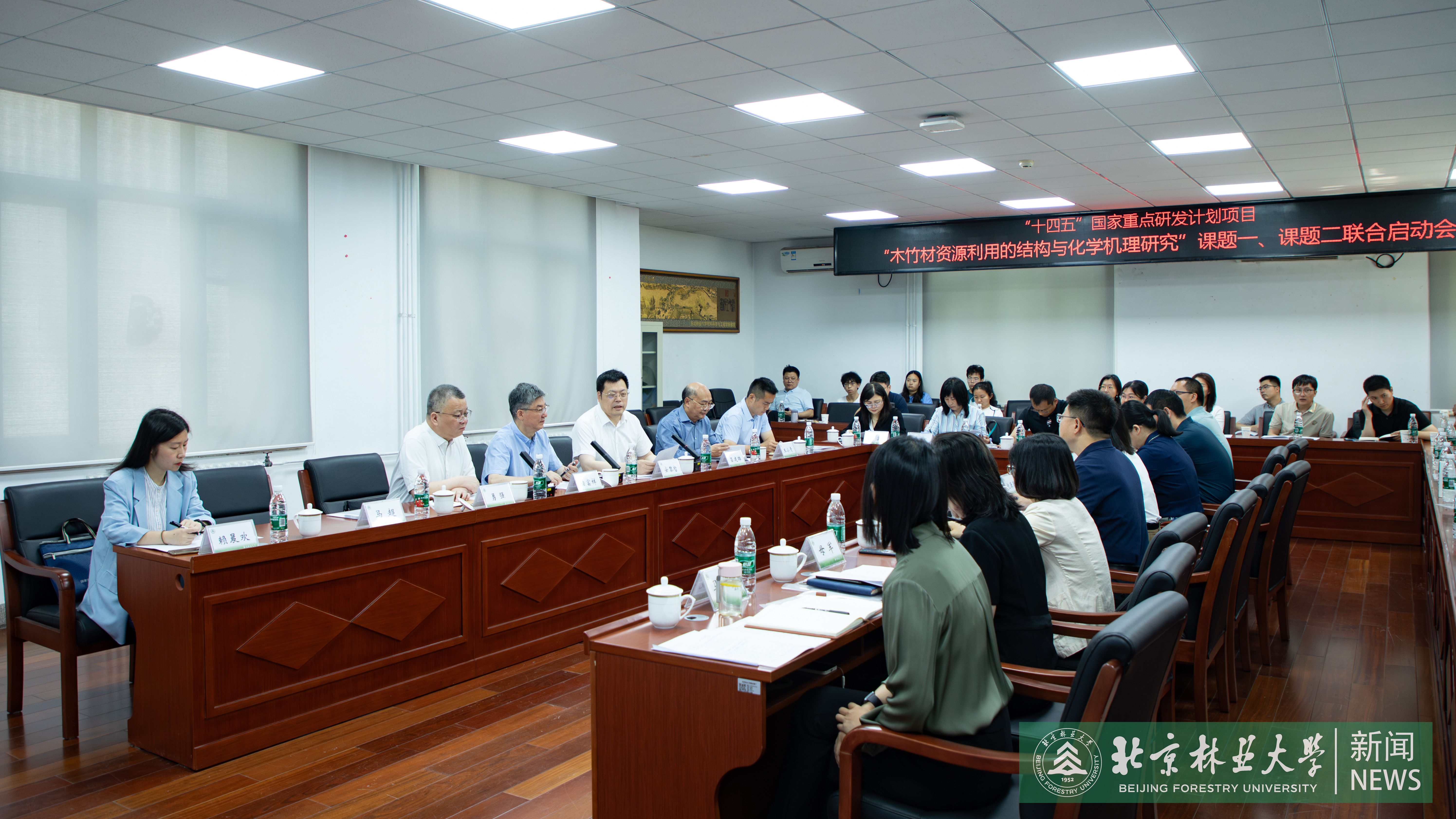 近日,“十四五”國家重點研發計劃項目“木竹材資源利用的結構與化學機理研究”課題一“木竹材細胞壁多層級結構與構效調控機制”和課題二“木竹材改性提質增效科學基礎”聯合啟動會在我校召開。校長安黎哲、中國林業科學研究院院長儲富祥研究員、南京林業大學校長勇強教授等專家學者出席會議。
