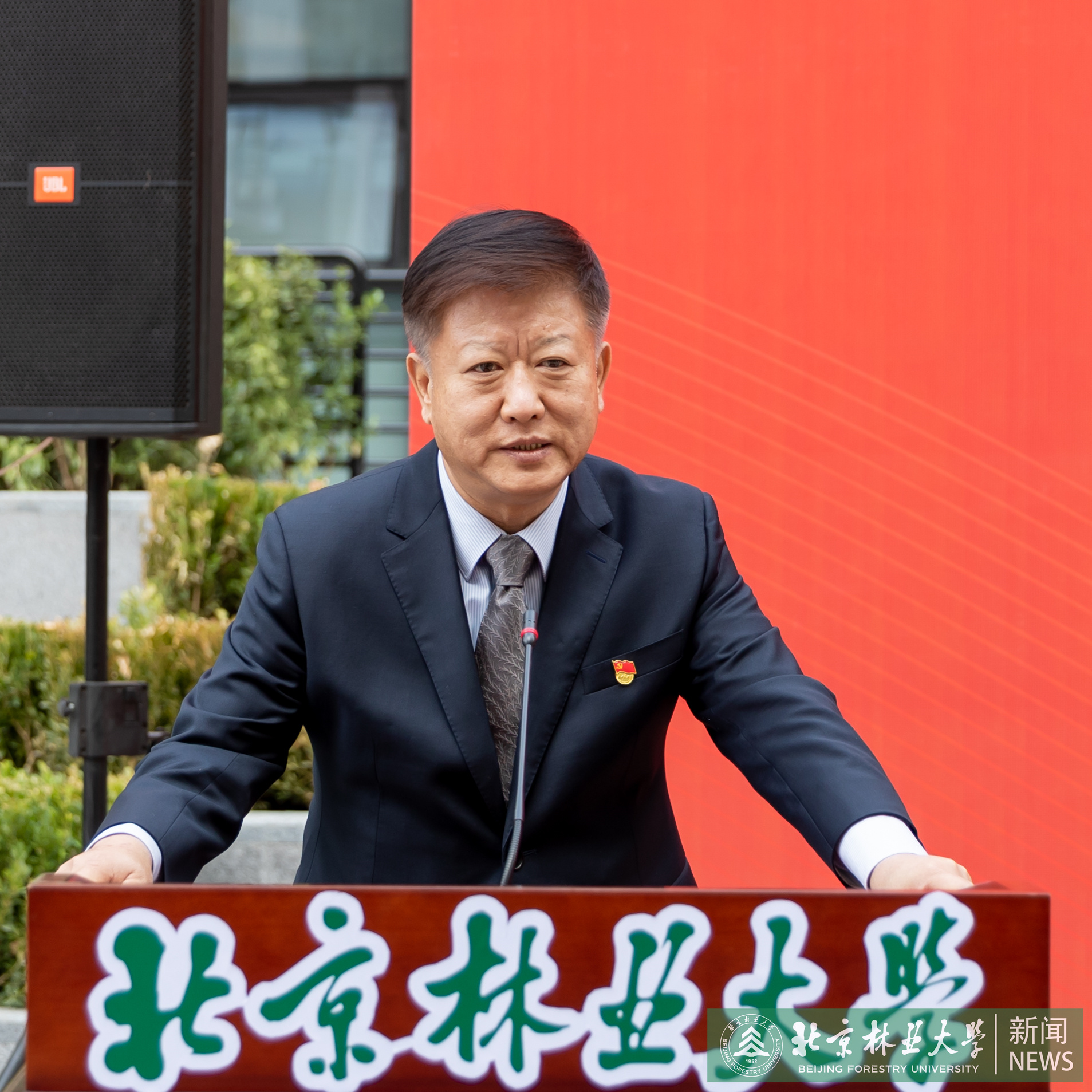 校黨委書記王洪元在儀式上講話。他指出,我校黨委高度重視傳承與弘揚(yáng)北林精神,校史館是堅(jiān)持立德樹人、傳承北林精神、筑牢文化陣地、完善大學(xué)功能不可或缺的一部分。北林老前輩們?cè)趧?chuàng)業(yè)期間從思想上、學(xué)術(shù)上、精神上匯成了我?!爸簿G報(bào)國(guó)”的精神、“知山知水,樹木樹人”的辦學(xué)理念以及“替河山裝成錦繡,把國(guó)土繪成丹青”的家國(guó)情懷,這是不能丟、不能忘的珍貴遺產(chǎn)。校史館從籌備到建設(shè)再到開館,歷時(shí)數(shù)年,全體工作人員克服時(shí)間緊、任務(wù)重、人手緊張、疫情形勢(shì)變化等多重阻力,加班加點(diǎn)、攻堅(jiān)克難,如期完成建設(shè)和布展任務(wù),這種不畏困難、積極向上的精神狀態(tài),正是年輕一輩傳承北林精神的體現(xiàn)。無論我們走得多遠(yuǎn),都不能忘記來時(shí)的路。老一輩留下來的對(duì)創(chuàng)業(yè)的堅(jiān)持、對(duì)科學(xué)的尊重、對(duì)創(chuàng)造的執(zhí)著等優(yōu)良傳統(tǒng)要在年輕一代中發(fā)揚(yáng)光大。他強(qiáng)調(diào),校史館要在發(fā)揮“以史資政,以史育人”的作用過程中逐漸豐富完善、茁壯成長(zhǎng),見證我校建成扎根中國(guó)大地的世界一流林業(yè)大學(xué)的那一刻。