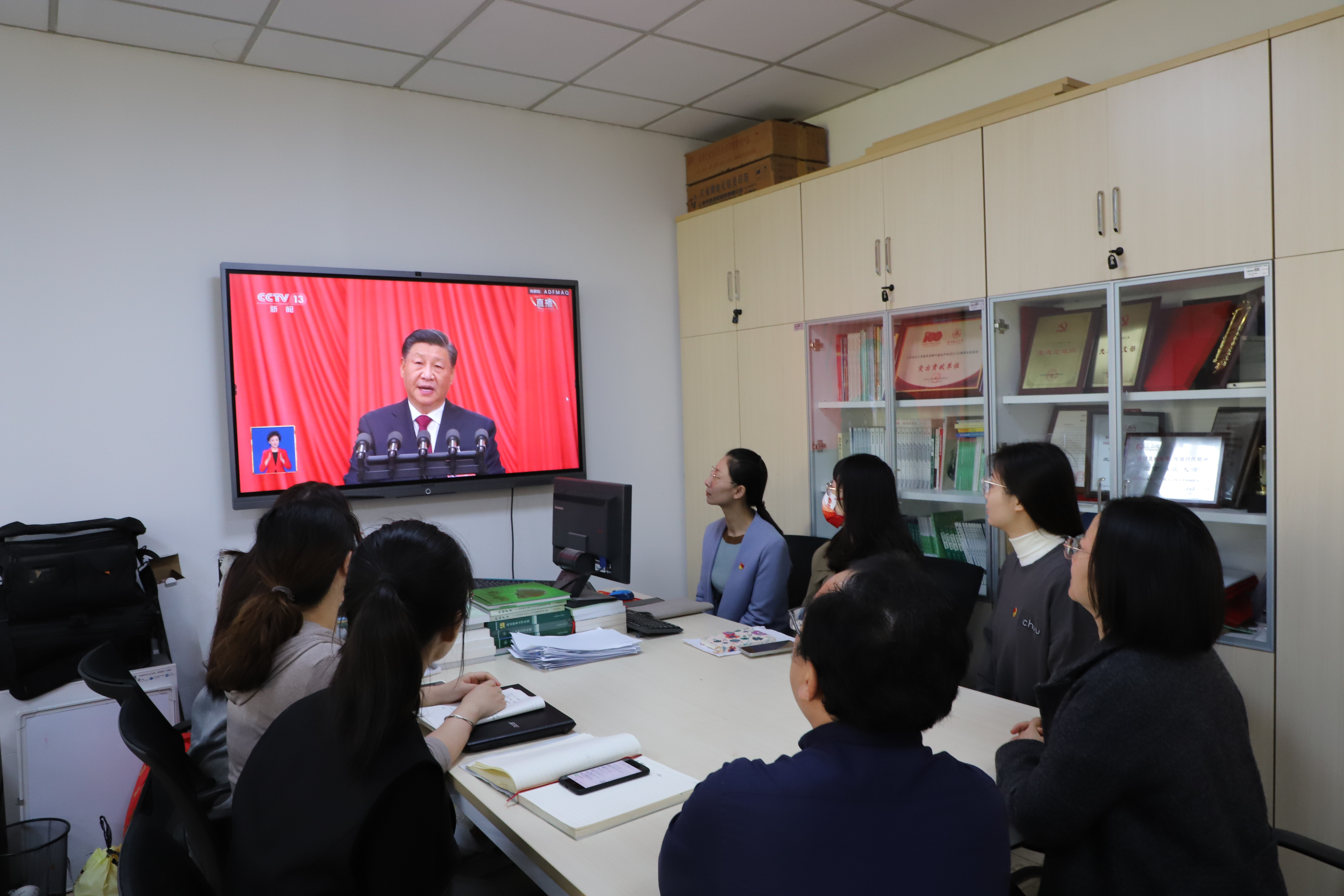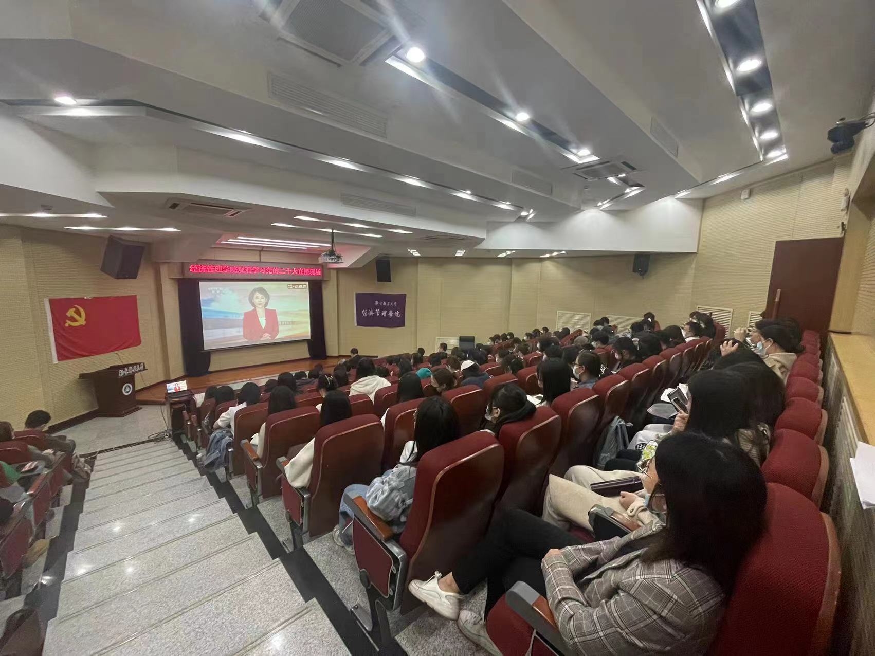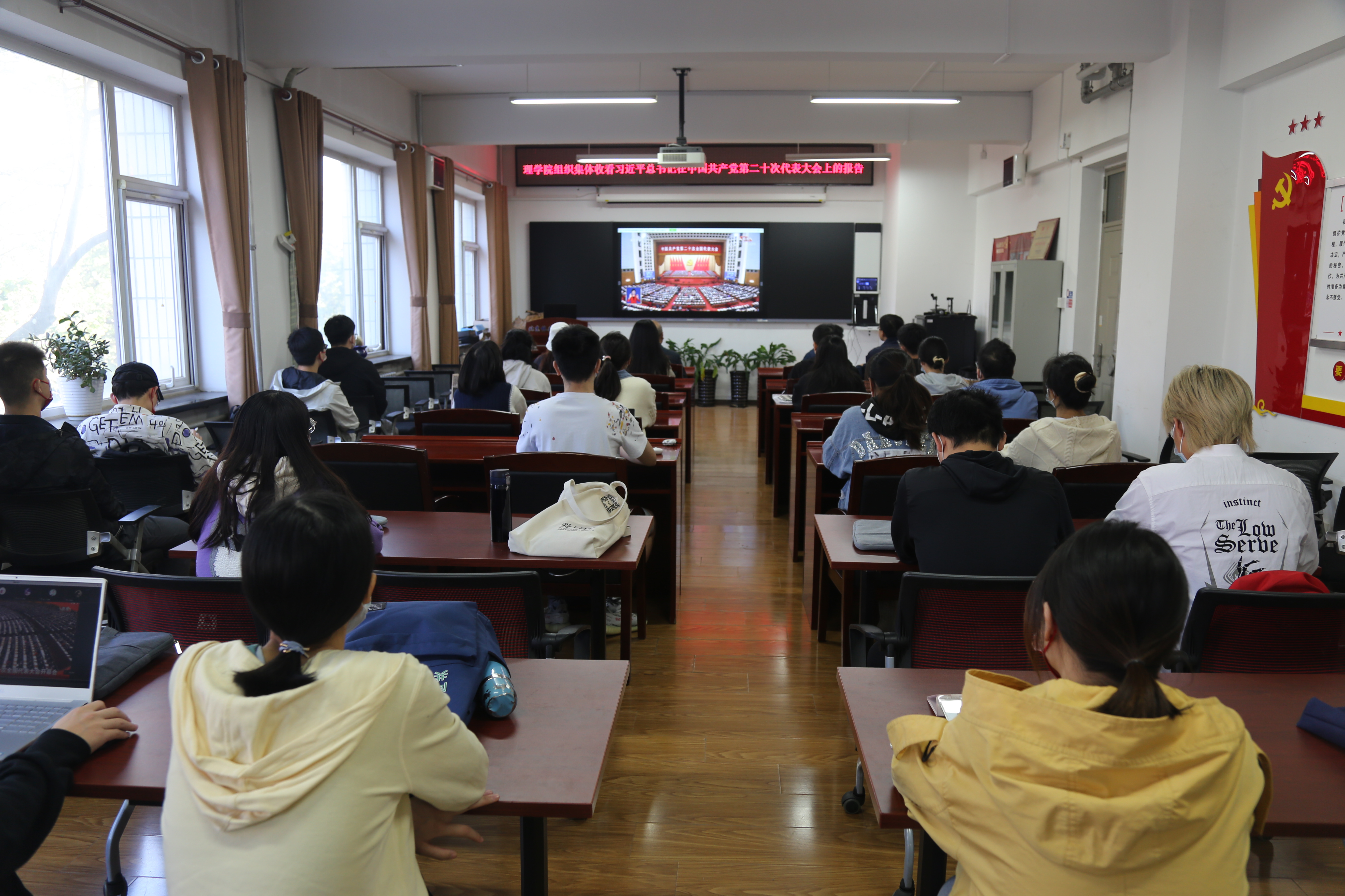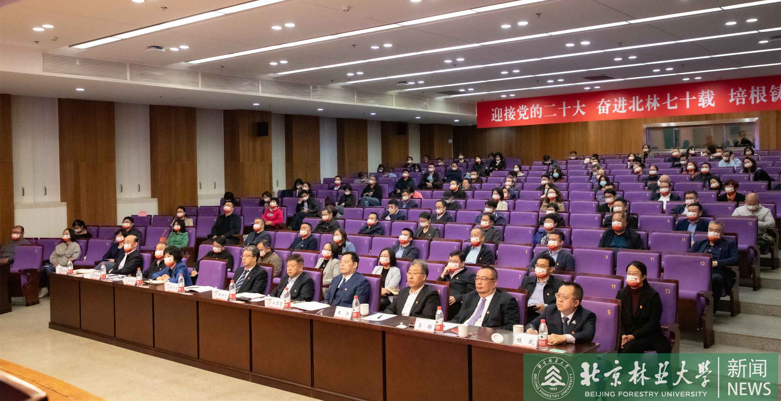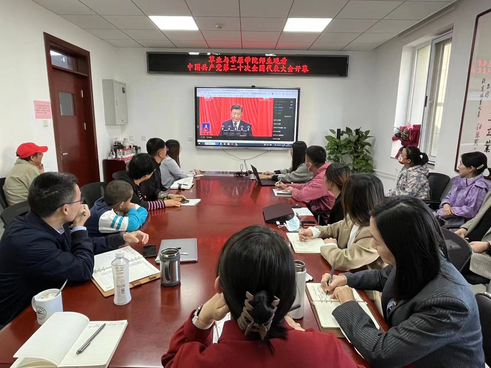 中國共產黨第二十次全國代表大會于10月16日上午10時在人民大會堂大禮堂開幕。北京林業大學全體校領導、各部門負責人、教師黨支部書記代表、教師代表共160余人集體在學研大廈報告廳觀看習近平總書記在中國共產黨第二十次全國代表大會上的報告。