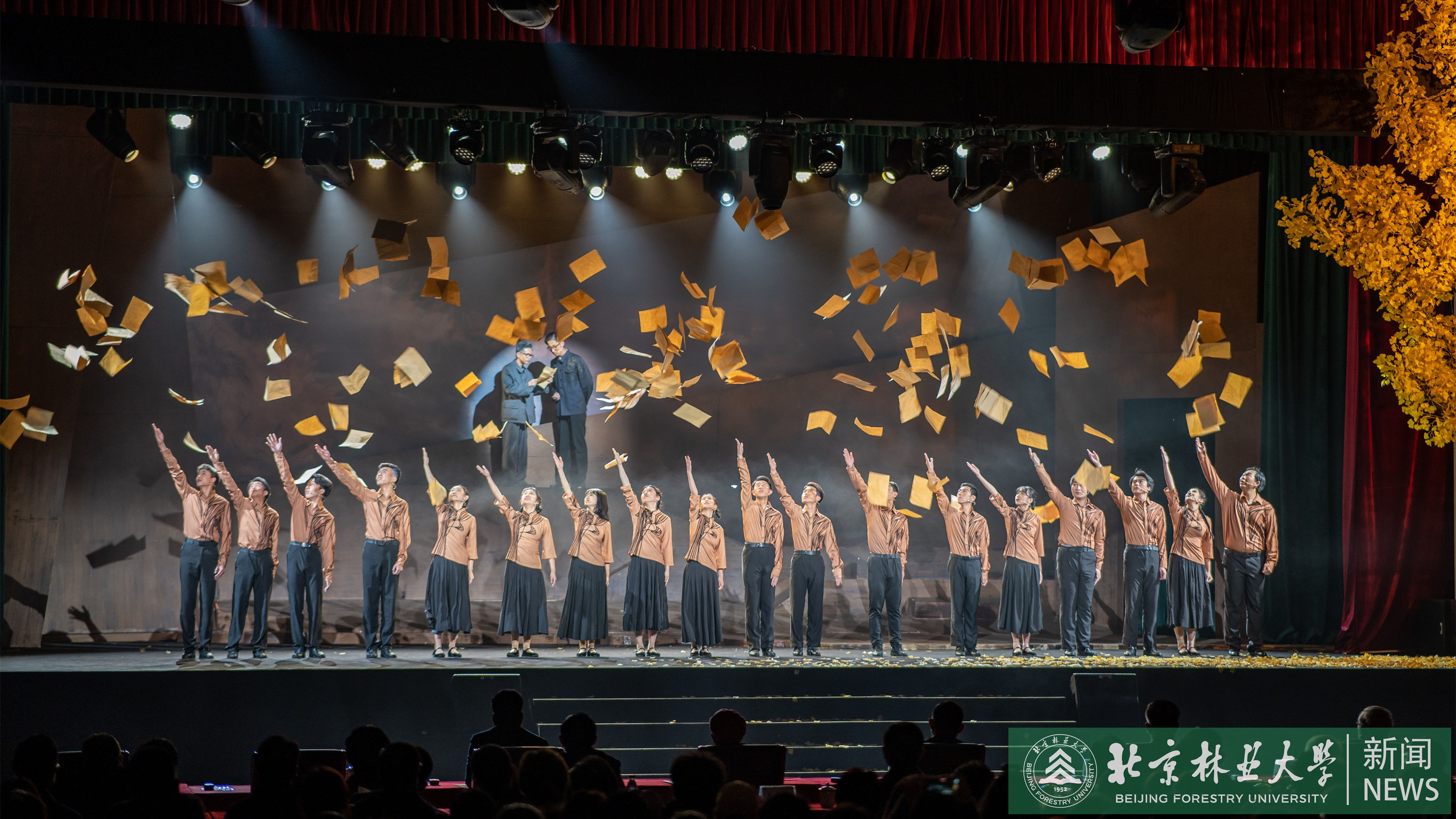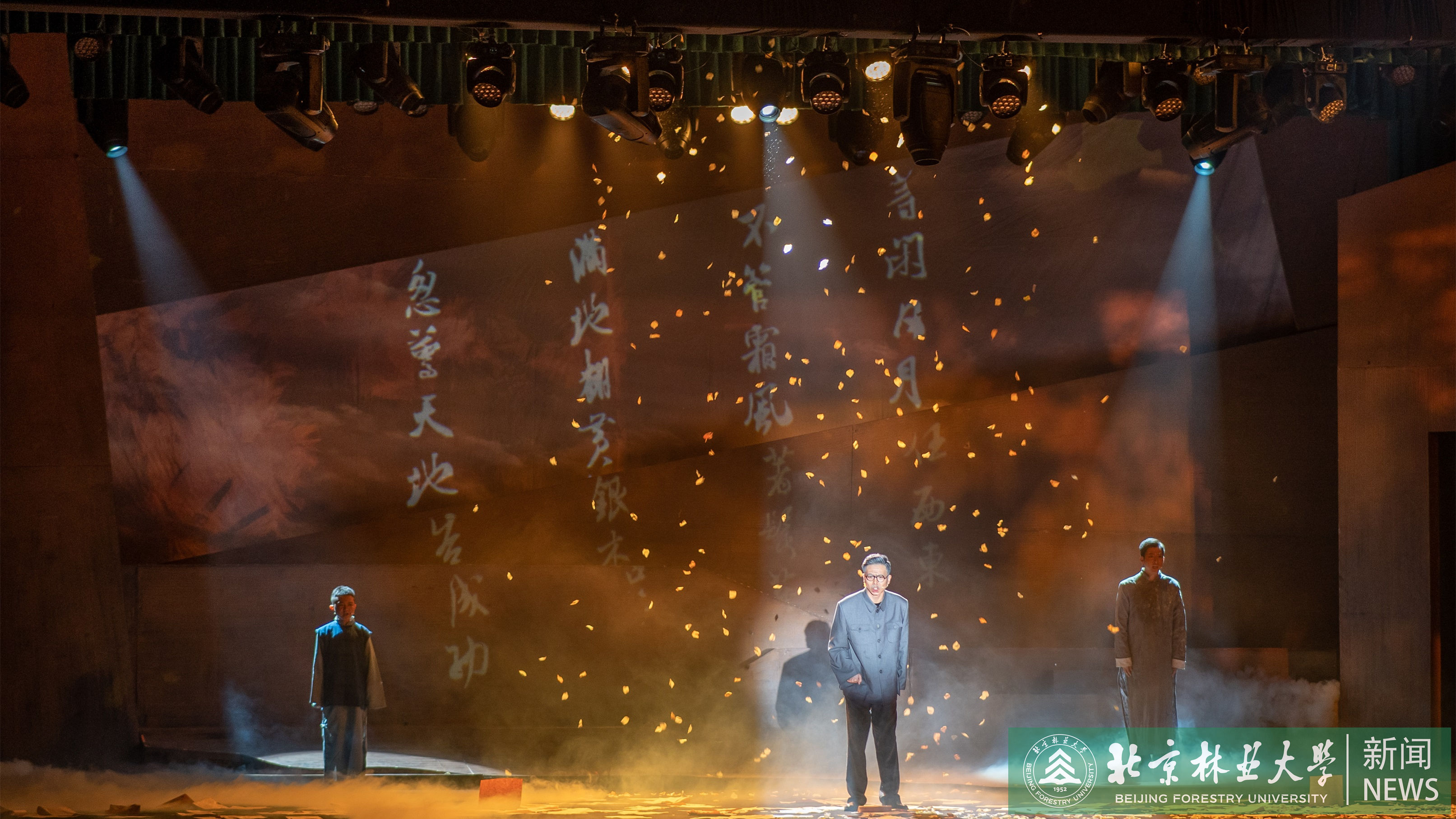 喜迎黨的二十大,傳承奮進新征程。為獻禮黨的二十大勝利召開,慶祝我校建校70周年,向以梁希先生為代表的老一輩林業科學家、教育家致敬,引導廣大師生校友愛校、榮校,我校原創話劇《梁希》七十周年校慶紀念版于10月14—16日在田家炳體育館連續公演三場。校慶日當天,九三學社中央相關領導、學校老領導、校領導和校友代表出席并觀看話劇演出。