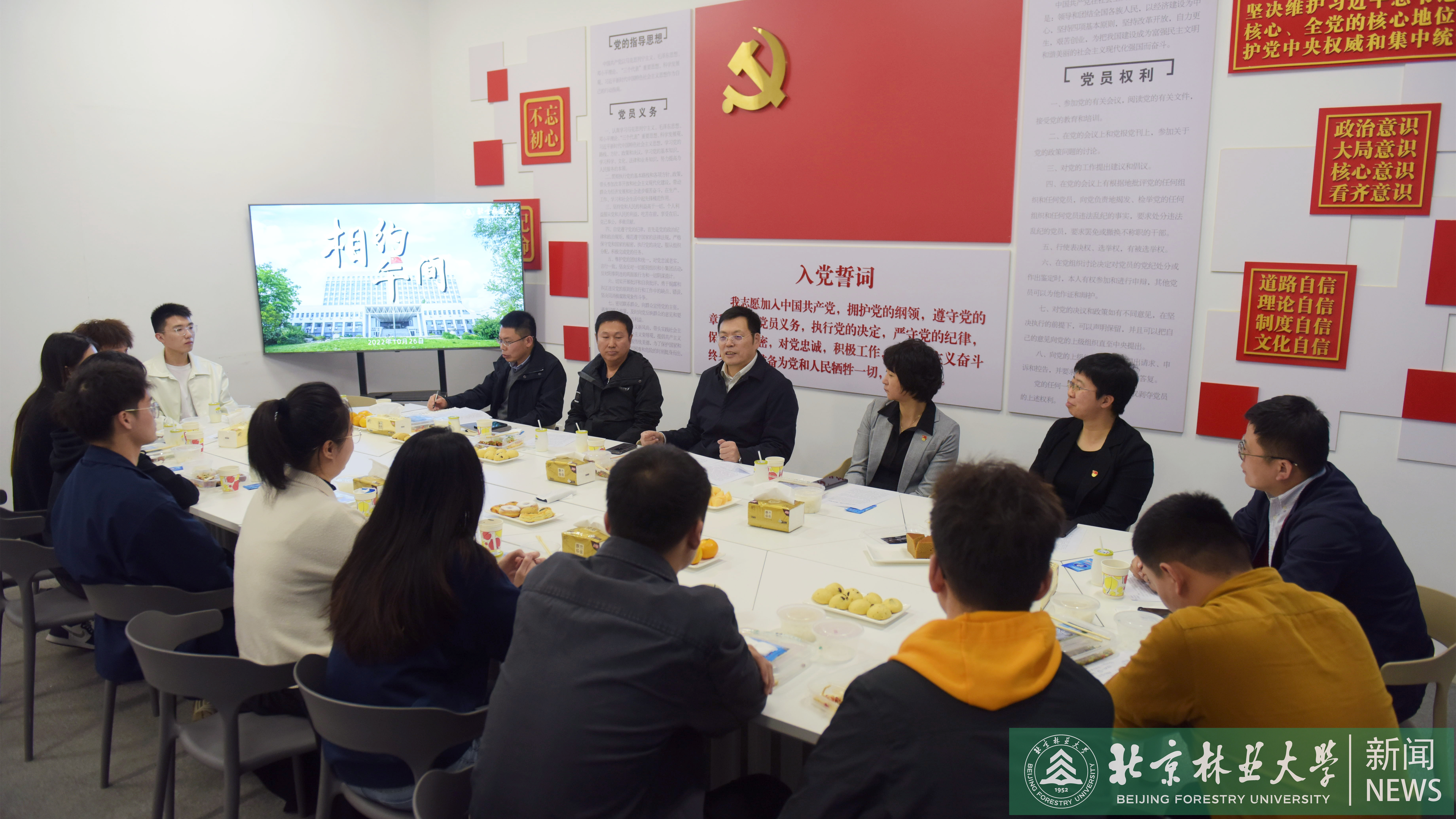 安黎哲認真聽取了每位同學關(guān)于黨的二十大學習感悟與學習科研情況,肯定了同學們積極學習黨的二十大精神的熱情與取得的各項成績,與同學們分享了自己的學習心得。他提到,黨的二十大報告闡明了人與自然的關(guān)系、自然與生態(tài)的關(guān)系、生態(tài)與發(fā)展的關(guān)系,解釋了人類可持續(xù)發(fā)展的規(guī)律,就是必須要走人與自然和諧共生的綠色低碳發(fā)展之路,走生態(tài)文明建設(shè)之路。他指出,北京林業(yè)大學作為全國最高綠色學府,站在建校70周年的歷史節(jié)點上,全校師生要深入學習貫徹黨的二十大精神,牢記空談誤國、實干興邦,堅持把生態(tài)文明建設(shè)作為立校之本、發(fā)展之基,完善科技創(chuàng)新體系,加快實施創(chuàng)新驅(qū)動發(fā)展戰(zhàn)略;要主動對接國家生態(tài)文明、美麗中國、鄉(xiāng)村振興、碳達峰碳中和、綠色發(fā)展等國家重大戰(zhàn)略和林草行業(yè)高質(zhì)量發(fā)展需求,為生態(tài)文明建設(shè)、美麗中國建設(shè)和促進人與自然和諧共生作出更大貢獻。