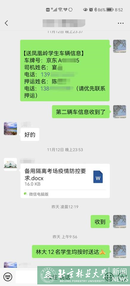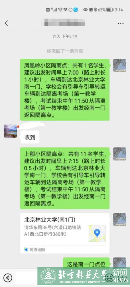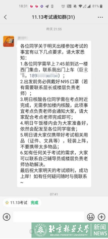 “老師,我們毛紡南小區(qū)剛通知要臨時封控,我還能回校參加考試嗎?”11月12日下午三點,園林學院的一名考生焦急地跟輔導員聯(lián)系。學校在充分研判風險等級的基礎上,協(xié)調(diào)由社區(qū)安排專人專車接送學生進校考試。
