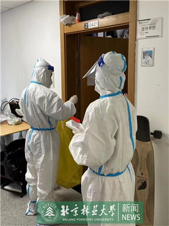 “噠噠噠”一位女老師快步跑在北林校園,她是雄安指揮部的韓茹雨。幾分鐘前,她剛接到通知“進駐7號樓”。回憶起剛進樓的那天,她笑著說:“路上遇見的每一位工作人員,不論是耐心仔細發放防疫物資的工作人員,還是7號樓外細心幫助我穿好防護服的保安大叔,知道我是駐樓專班,都給予極大關照。現在想想,那一刻除了緊張、擔憂,還有迎接挑戰的興奮!”