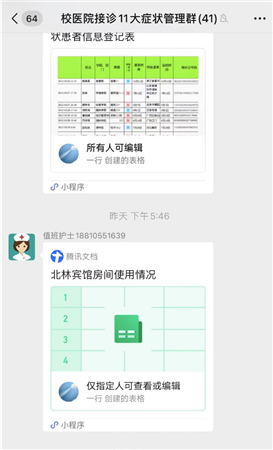 海量的流調信息,一次次統計、一張張表格、一通通流調電話,24小時不休地工作是常態。她與校內外相關人員對接的聊天記錄翻都翻不完,凌晨的對話框也是頻頻彈出,從不停歇。