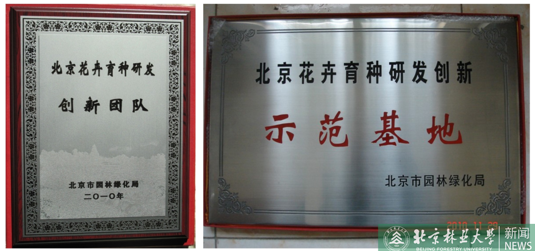 花卉育種的核心在于創新,經過30余年孜孜不倦的奮斗,不斷培育的新品種如雨后春筍噴薄而出。目前,團隊自育大菊品系30余個,自育小菊品系50余個。其中3個切花菊、8個盆栽大菊和20余個露地小菊獲得新品種授權,4個小菊新品種通過北京市良種審定。主持完成國家林業局相關項目,獲得“中國傳統菊花品種產業化生產技術”“切花菊產業化周年生產技術”等多項技術成果。完成了800余個大菊品種連續10年的形態觀測記載,建成了中國傳統菊花品種數據庫;使用分子標記技術建立了菊花品種鑒定技術體系,可鑒別1600余個菊花品種。團隊還獲得“北京市花卉育種研發創新團隊”榮譽稱號。
