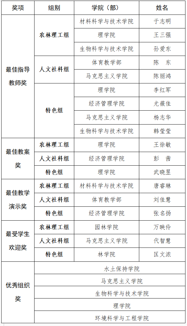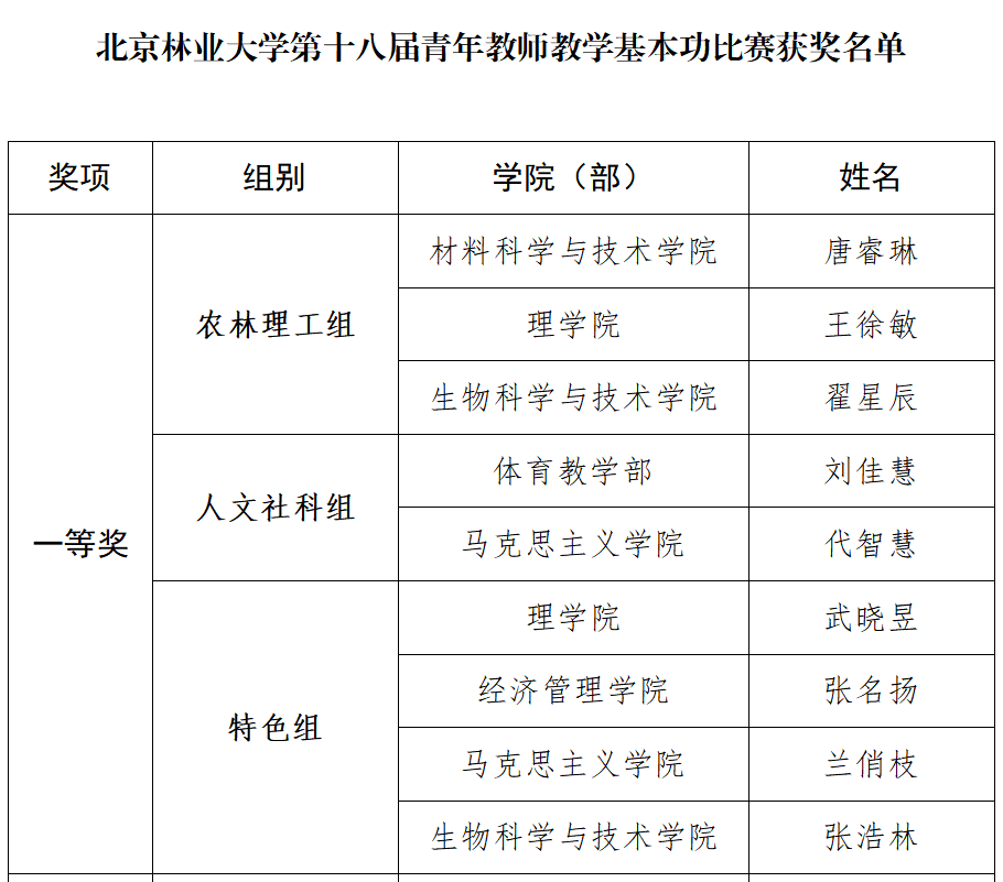 附:北京林業大學第十八屆青年教師教學基本功比賽獲獎名單