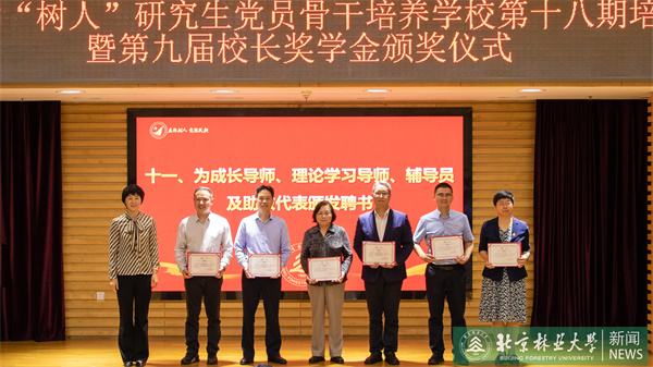 孫信麗宣讀了《關于表彰第九屆校長獎學金獲得者的決定》,并為第十八期“樹人”學校培訓班成長導師、理論學習導師、輔導員及助教代表頒發(fā)聘書。