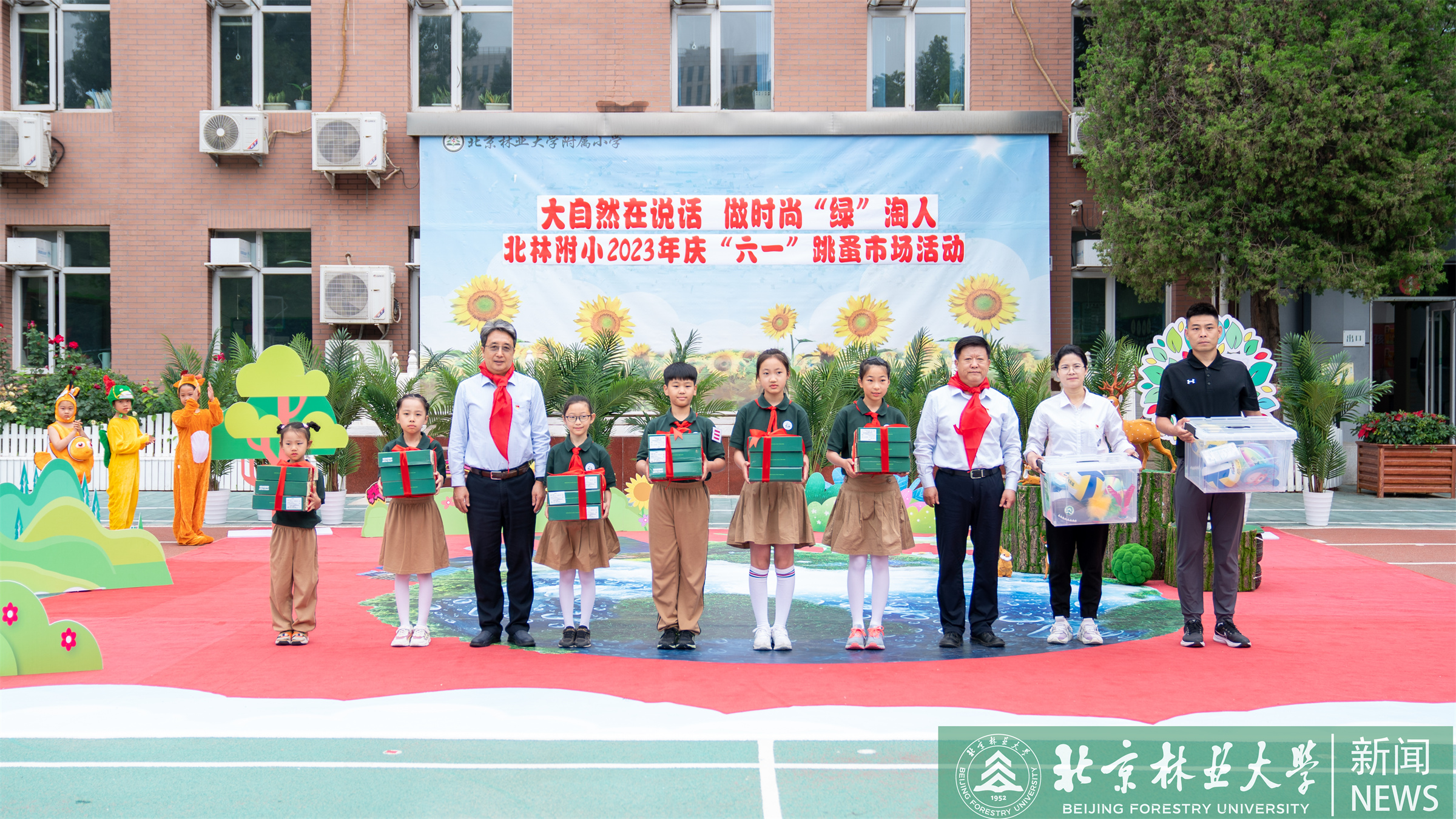 王洪元、謝學文來到北林附小,出席了“大自然在說話,做時尚‘綠’淘人”慶“六一”活動開幕式,為孩子們送上了植物根部觀察窗和體育器材等節日禮物,希望孩子們從小熱愛自然,涵養綠色情懷;從小熱愛運動,健康快樂成長。