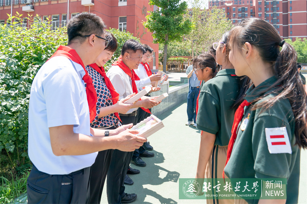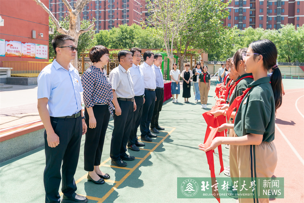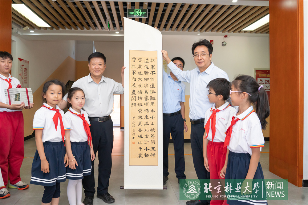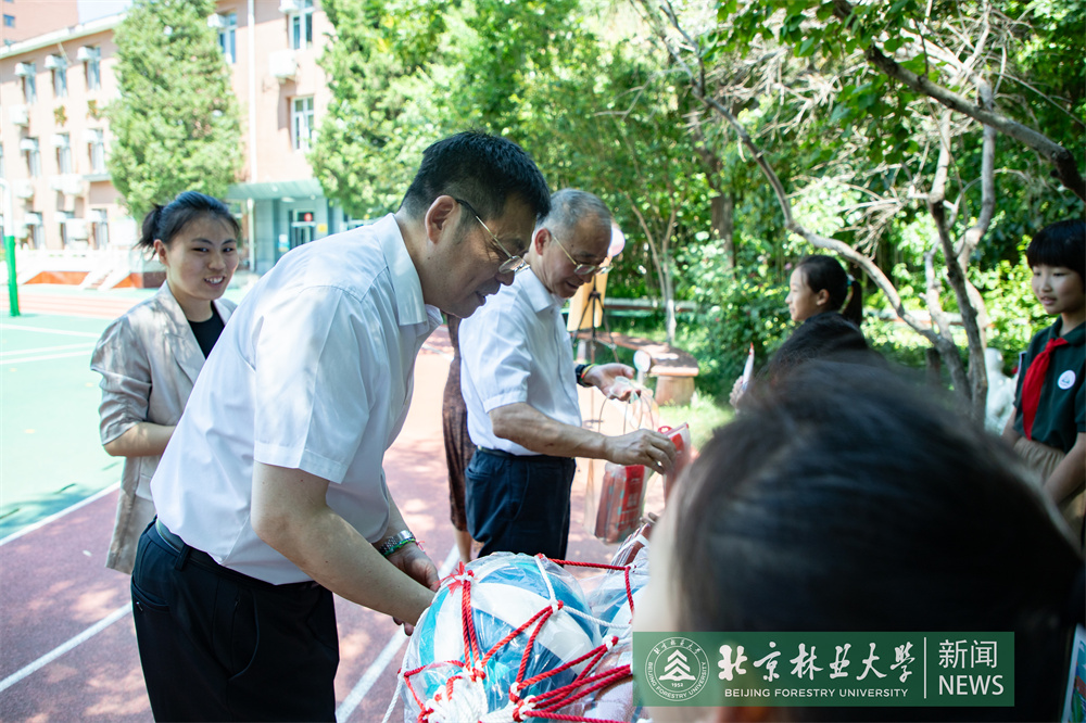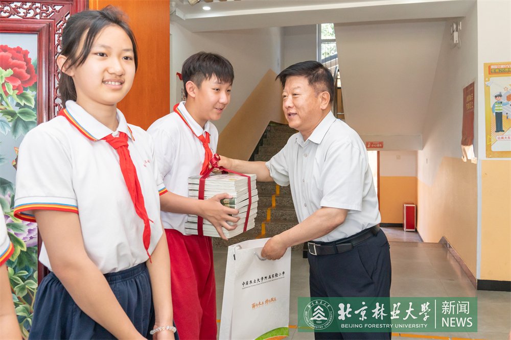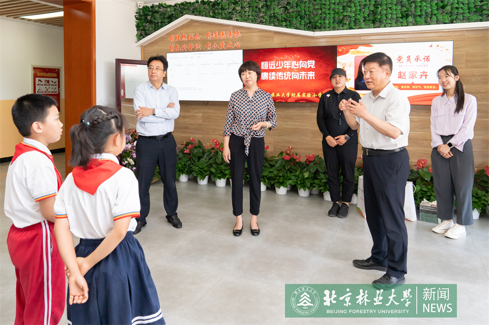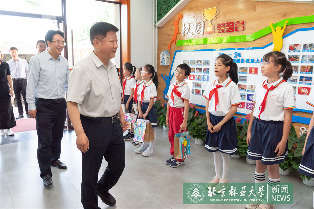 在北京林業大學附屬實驗小學,王洪元、謝學文一行向孩子們贈送了學習用品和體育用品,祝福他們節日快樂,勉勵孩子們從小樹立遠大理想,好好學習、天天向上,爭當新時代的好少年。王洪元一行還來到種植園,參觀孩子們種植的蔬菜瓜果,并強調勞動課對培養動手能力、養成良好品格極為重要,要不斷總結經驗,擴大課程覆蓋面,全面加強勞動教育。