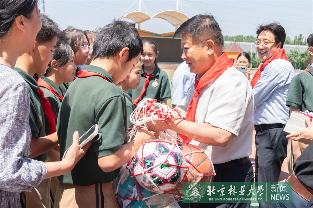 在北京林業大學附屬小學,安黎哲、鄒國輝一行參觀了教學樓和運動場,深入了解孩子們的學習環境,與他們親切交流并送上書籍和體育用品,祝愿他們快樂學習,健康成長。