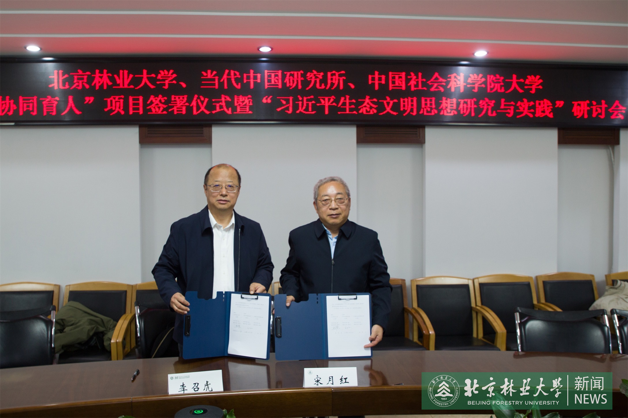 李召虎對當代中國研究所、中國社會科學院大學代表團的到訪表示熱烈歡迎。他指出,北京林業大學堅持把服務生態文明建設作為立校之本、發展之基,在習近平生態文明思想研究闡釋、生態藝術呈現等方面積累了豐富成果。當代中國研究所與社科院大學在歷史研究、理論創新等領域優勢顯著,雙方合作將實現“優勢互補、合作共贏”。他強調,此次簽約是落實教育部“一部六院”科教融匯協同育人項目的重要舉措,期待通過跨學科聯合培養、科研攻關等方式,共同培養服務國家生態文明建設的創新型人才。