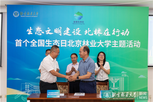 8月15日是首個全國生態日,北京林業大學舉辦了“生態文明建設 北林在行動”主題活動。中國生態文明研究與促進會副會長兼秘書長劉青松、北京市園林綠化局副局長沙海江、東北虎豹國家公園管理局副局長張陜寧、教育部主題教育第三巡回指導組成員袁芳,校黨委書記王洪元、校長安黎哲、校黨委副書記謝學文、校黨委副書記孫信麗、副校長鄒國輝出席活動。中國生態文明研究與促進會研究部主任胡勘平、社會科學文獻出版社政法傳媒分社社長曹義恒、北京教育科學研究院終身學習與可持續發展教育研究所副所長王巧玲、大熊貓國家公園綿陽管理分局副局長劉勝軍、武夷山國家公園(江西片區)管理局副局長方毅、新疆卡拉麥里國家公園創建區副主任馬偉等參加活動。活動由王洪元主持。