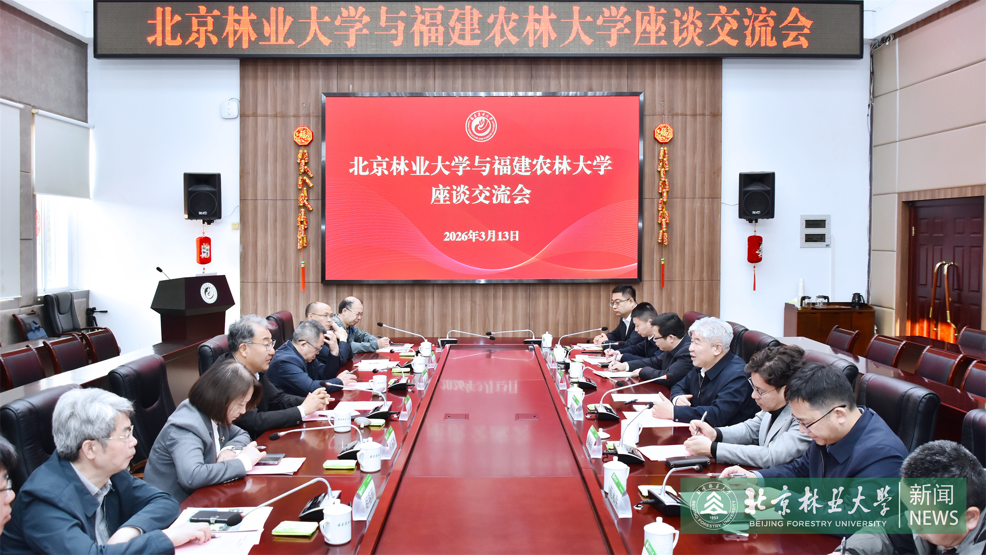 福建農林大學黨委書記賴海榕對王濤一行表示歡迎,感謝北京林業大學長期以來對學校建設發展的關心和支持。他指出,北京林業大學是中國高等綠色學府、中國林業和生態環境教育戰線及生態文明建設的“排頭兵”。兩校同氣連枝、親如兄弟。長期以來,北林大在學科建設、科學研究、人才培養以及項目申報等方面給予了福建農林大學無私的幫助,雙方結下了深厚情誼。他表示,當前福建農林大學正在深入貫徹落實習近平總書記給全體師生的重要回信精神,今年又恰逢學校90周年華誕,理應向廣大校友和社會各界交出優異答卷;同時迎來國家“雙一流”建設擴容的重要窗口期,學校正全力以赴爭取實現新突破。期待北京林業大學繼續傾囊相授、鼎力支持,雙方聚焦國家戰略,深化務實合作,實現互利共贏,攜手為服務國家戰略和區域經濟社會發展作出更大貢獻。
