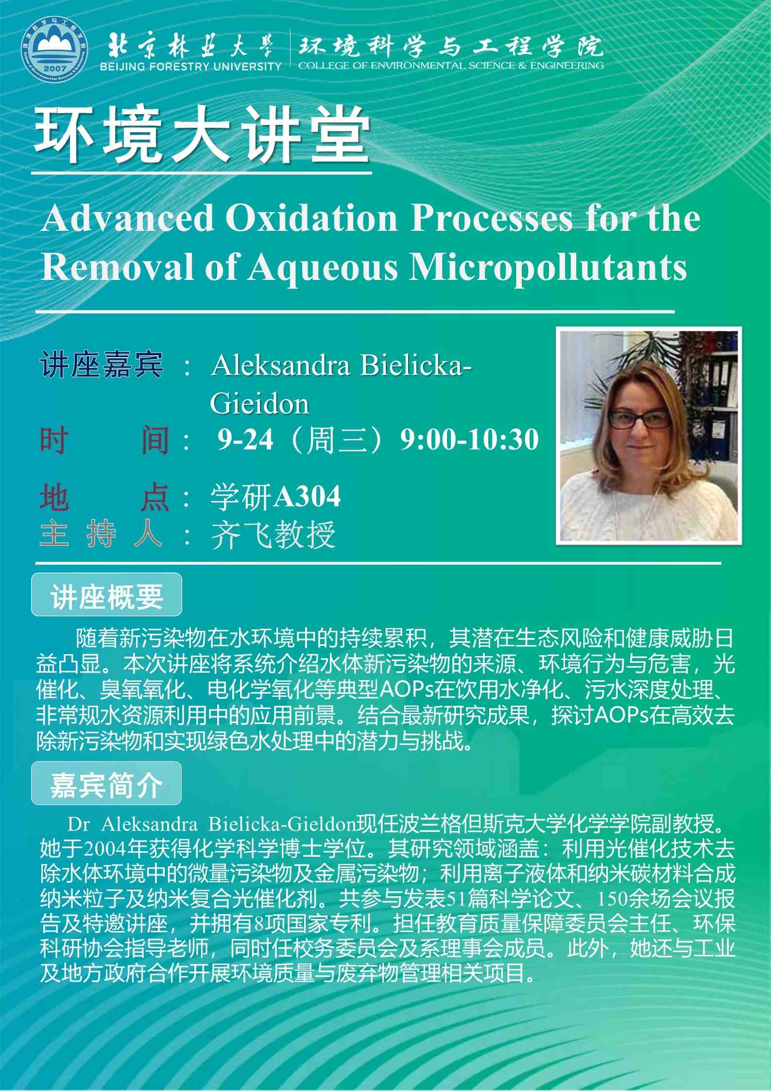 活動預告丨環境大講堂:Advanced Oxidation Processes for the Removal of Aqueous Micropollutants